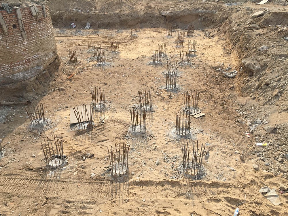 项目简介:山东黄金矿业(莱州)有限公司三山岛金矿西山矿区进风井井塔桩基建设工程,由山东省烟台地质勘察院负责工程勘察,山东黄金集团烟台设计研究工程有限公司设计。西山矿区进风井井塔桩基建设工程包含桩基总数57根,桩基类型为泥浆护壁钻孔扩壁灌注桩,桩顶设计标高+0.50m, 有效桩长22.050米,且进入4-2层强风化花岗岩层不小于2米。桩直径600mm,桩身混凝土强度:C35 ,单桩竖向极限承载力标准值不小于4576KN。